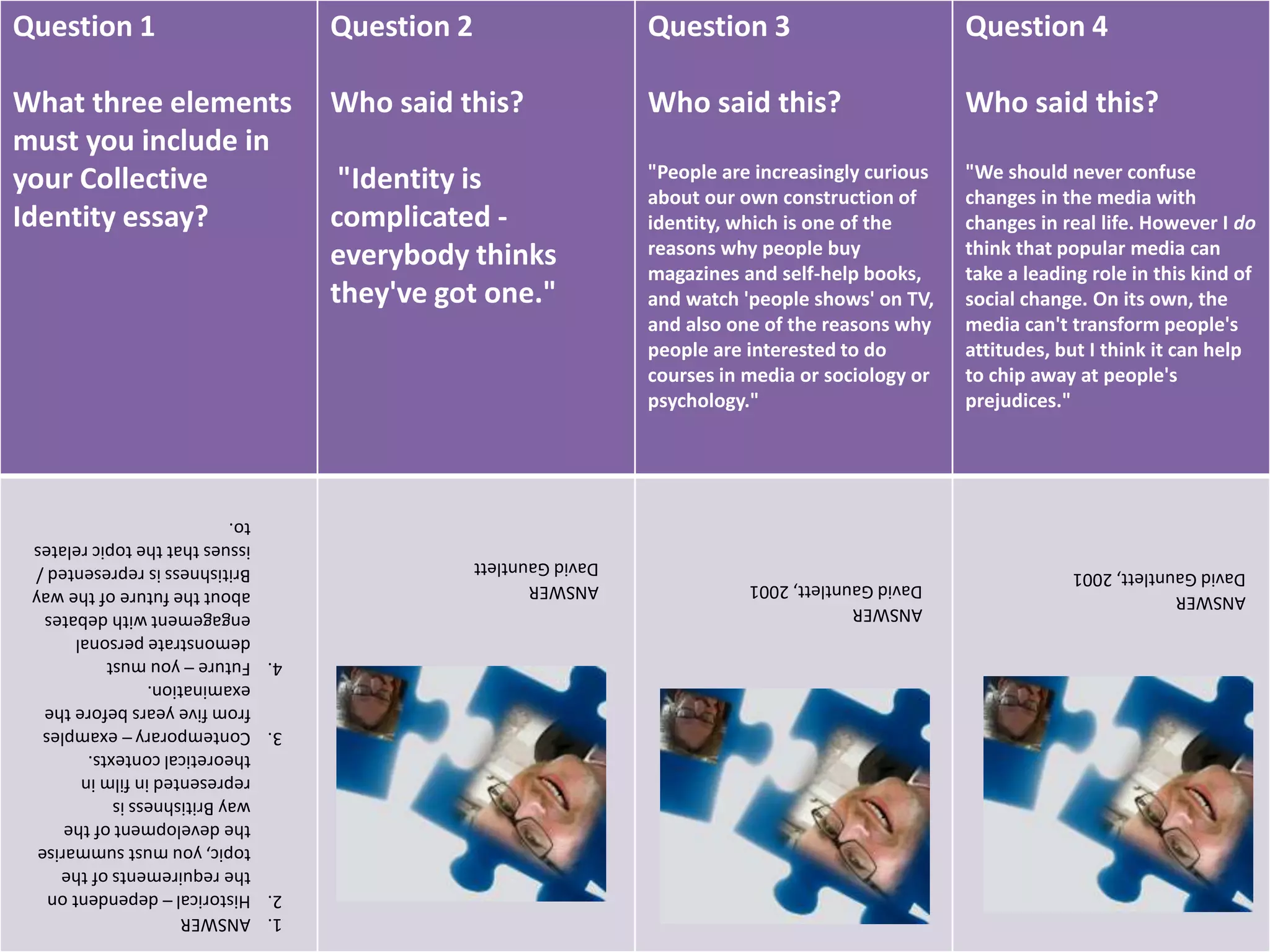 This document contains 40 multiple choice questions related to film studies. The questions cover topics like key films, directors, genres, theories of representation, postmodernism, feminism, and concepts like mise-en-scene, sound, and editing. Each question is followed by a single word or short phrase answer. The questions appear to be part of a test or study guide for a film studies course.