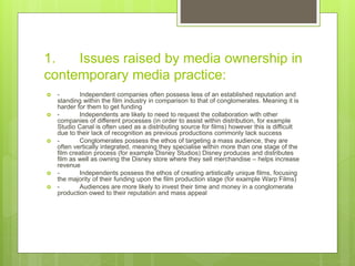 This document summarizes several key issues in contemporary media ownership and practice: