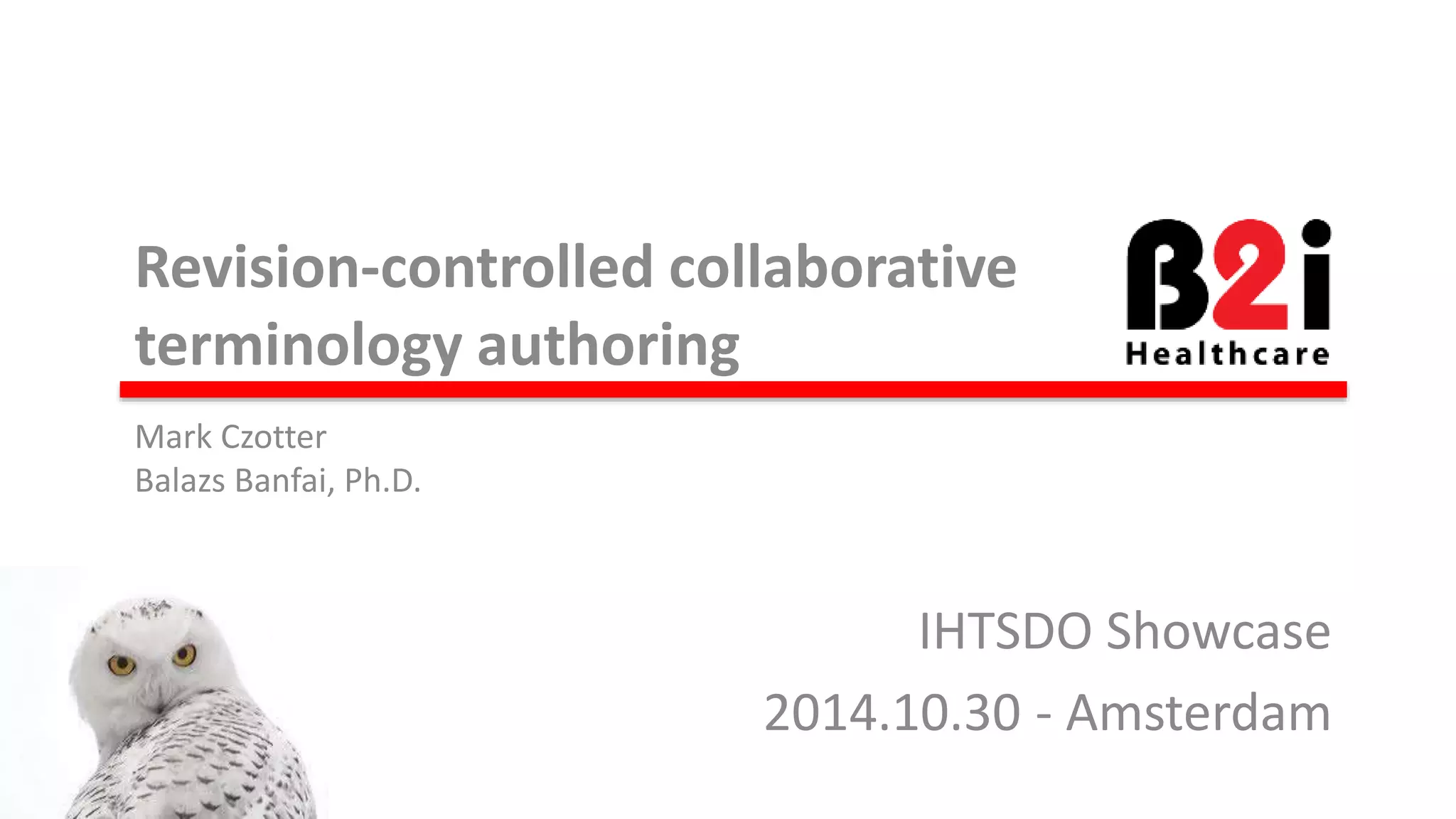 The document details a collaborative authoring approach for healthcare terminology, emphasizing real-time support, workflow management, and revision control. It describes the functionality for multiple authors to work in isolated environments ('sandboxes'), with the ability to synchronize and promote changes to a main repository. Additionally, it covers the integration of issue tracking systems and the management of versioning and branching for revisions.