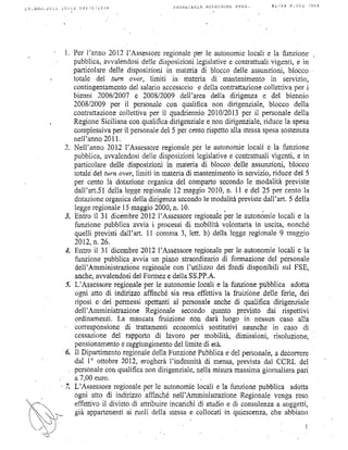 Il documento annuncia una revisione della spesa per il personale della Regione Siciliana, con convocazione di incontri tra rappresentanti sindacali e assessori per discutere la proposta. Sono previsti blocchi sulle assunzioni e riduzioni della dotazione organica, nonché misure per razionalizzare i servizi e contenere i costi. Entro il 31 dicembre 2012, l'assessore per le autonomie locali e la funzione pubblica deve avviare misure straordinarie per la mobilità e la formazione del personale.