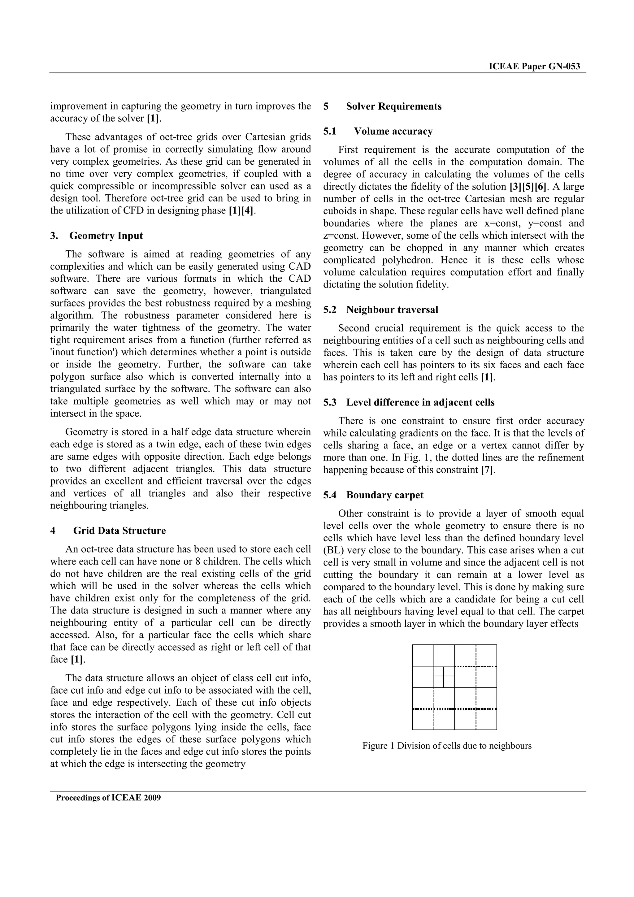 The document discusses an automatic oct-tree based cartesian mesh generation software designed to optimize grid creation for computational fluid dynamics (CFD), particularly over complex geometries. It details the algorithm's robust features, including the ability to create a large number of cells rapidly and accurately capture geometrical complexities, along with an incompressible Euler solver implemented on these meshes. The proposed method demonstrates significant potential to enhance simulations in CFD applications by reducing human intervention in grid generation while maintaining high accuracy in flow representation.