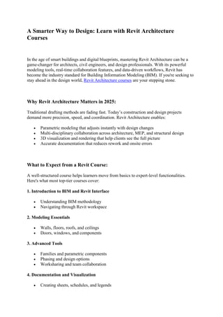 In the age of smart buildings and digital blueprints, mastering Revit Architecture can be a
