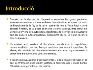 tot Europa. La instauració del liberalisme tindrà lloc en tres onades
