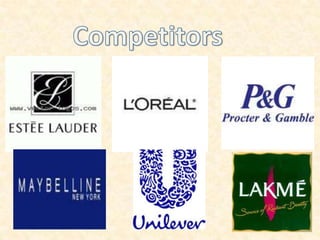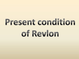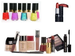 The document discusses Revlon's product portfolio. It provides details on their product mix, lines, and depth across different categories for women and men including face, eyes, lips, nails, skin care, and fragrances. Product details are given for items within each category along with images and descriptions. The strategies discussed are increasing product width, depth, and length to appeal to more customers and strengthen their market position.