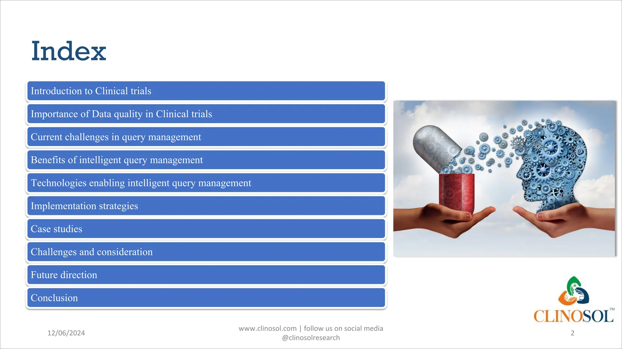 The document discusses the importance of data quality in clinical trials and how traditional query management systems face challenges in managing increasing data complexity. It proposes intelligent query management as a solution, highlighting its benefits such as improved accuracy, efficiency, and scalability while ensuring regulatory compliance. The future direction emphasizes advancements in AI and machine learning to enhance these systems further, promising better data quality and trial efficiency.