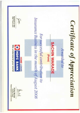 HDFC Bank SLIC Cert 2010
