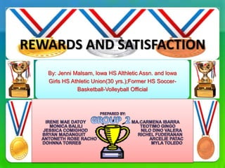 This document discusses the various rewards and satisfactions that can come from being a high school soccer referee over a long career. It identifies three main types: physical fitness, mental fitness and attitude, and social networking and people skills. Physically, refereeing can improve health, stamina, and reflexes. Mentally, it can boost qualities like alertness, decisiveness, and determination. Socially, networking in the refereeing community leads to lifelong friendships and helps one develop strong communication and social skills.