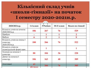 2020/2021н.р. 1-4 класи5-9 класи 10-11 класи Всього по гімназії