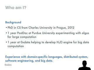 The document discusses building and scaling random forests for big data applications, presenting theoretical background and practical implementation details. It covers decision trees, the concept of bagging, and ways to prevent overfitting while ensuring model generalization. Additionally, it highlights the challenges and solutions related to processing large datasets and improving computational efficiency.