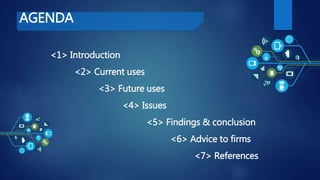 The document provides a comprehensive overview of RFID technology, including its history, current and future applications, benefits, and associated issues like privacy and security. It highlights how RFID improves inventory management and its potential future uses in sectors like smart factories and drone technology. The document concludes with advice for firms regarding the implementation of RFID and the need for appropriate legislative standards.
