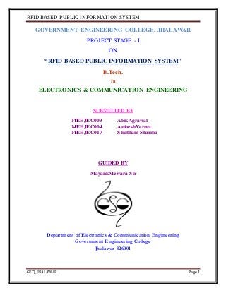 The document discusses the development of an RFID-based public information system for institutions, focusing on its implementation as a solution to manage identification and attendance using RFID tags and a microcontroller. It outlines the project methodology, hardware design, and the technological components involved, such as Arduino Uno, RFID readers, and LCD displays. The project's aim is to facilitate efficient identification and attendance management in various public settings.
