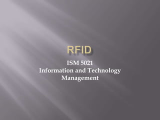 This document discusses an ISM 5021 Information and Technology Management course. It lists the names and locations of 6 students in the course. It also discusses how the group worked collaboratively on a wiki project about RFID (radio-frequency identification) technology, with each student researching and writing a section and the group editing each other's work. It emphasizes the importance of the wiki being informative, educational, entertaining, and covering a broad cross-section of the topic in an organized and harmonized manner.