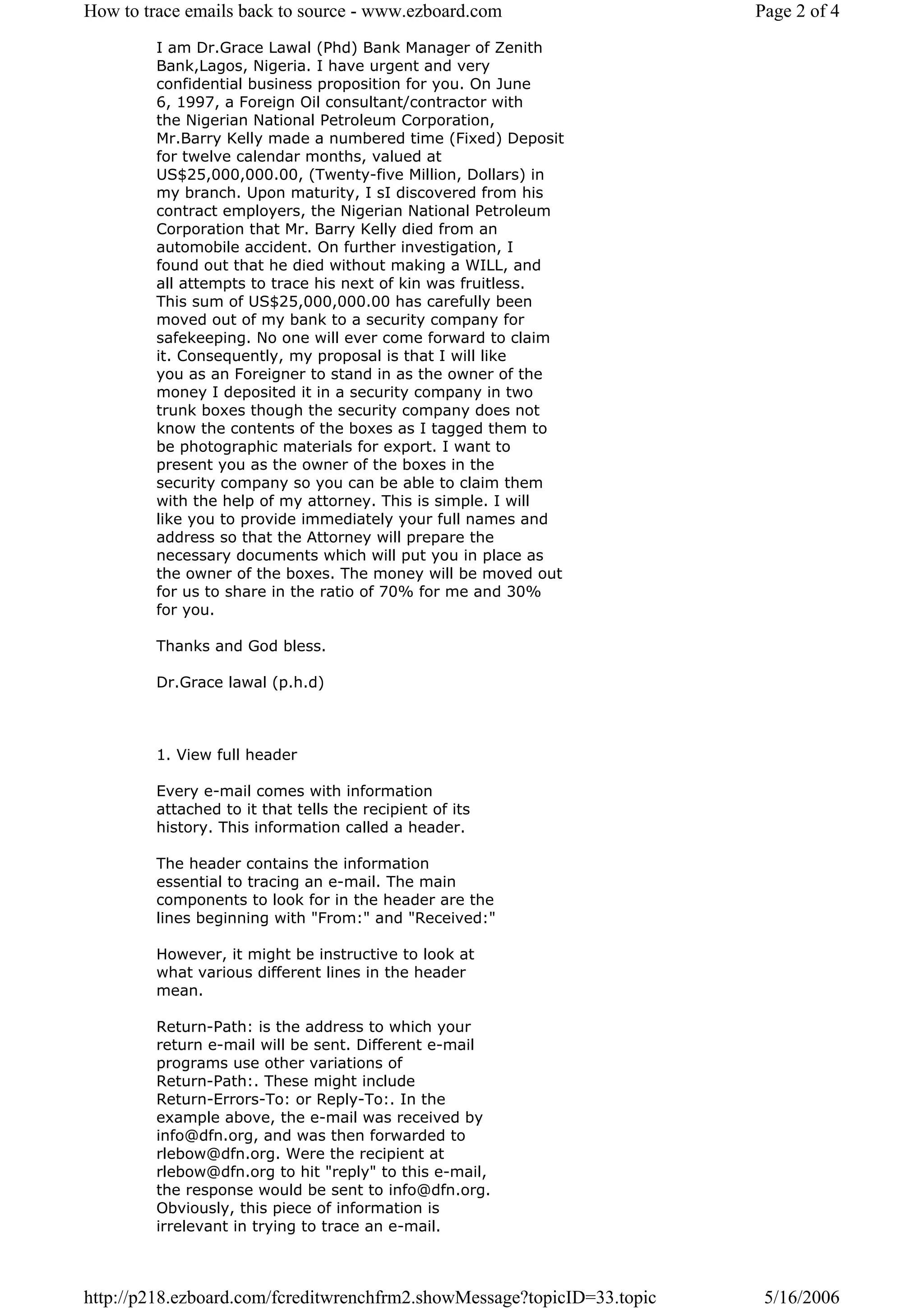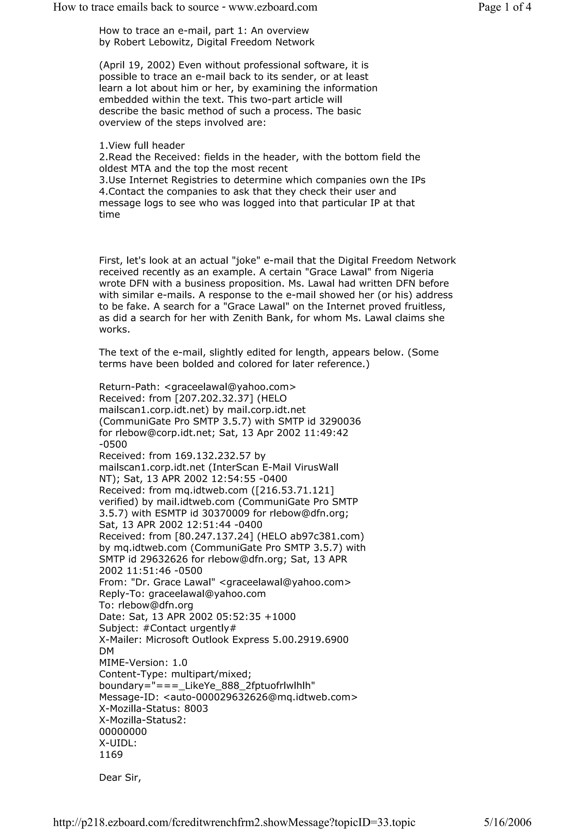 2) Work backwards through the "Received:" fields to identify the originating IP address.