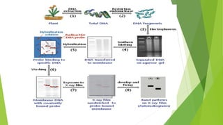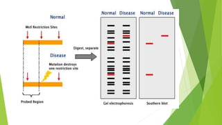 The document provides an overview of the Restriction Fragment Length Polymorphism (RFLP) technique used for DNA analysis, which differentiates organisms based on DNA cleavage patterns. It outlines the process of RFLP, including the steps of DNA digestion, gel electrophoresis, and hybridization, as well as its applications in forensics, genetic mapping, and disease detection. The advantages and disadvantages of RFLP are also discussed, highlighting its effectiveness and challenges.