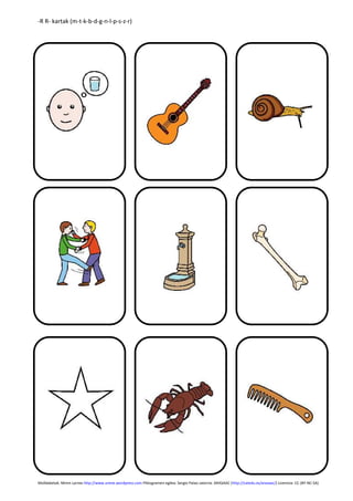 RR Fonema irakasteko kartak, inprimatzeko eta irakurtzeko. Fonemak irakasteko ordena hau da: m-t-k-b-d-g-n-l-p-s-z-r-rr