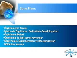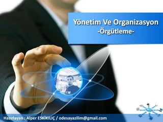 Yönetim ve organizasyon teknikleri, örgütleme ile ilgili akademik sunudur. Örgütleme teknikleri ve süreçleri ile ilgili detaylı bir power point sunusudur. Bölümlendirme süreçlerini içermektedir. By: Alper ESKİKILIÇ