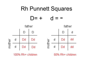 The document discusses the Rhesus factor and its implications for pregnancy, particularly focusing on Rh incompatibility between an Rh-negative mother and an Rh-positive fetus. It details the mechanisms of sensitization, the resulting hemolytic disease of the fetus and newborn (HDFN), and the various clinical manifestations and preventative measures. The document also outlines diagnosis, delivery planning, and the methods of delivery in cases of Rh incompatibility.
