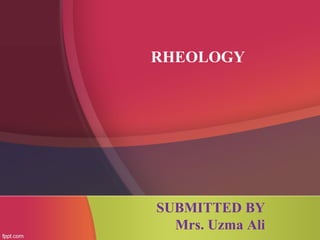 Rheology is the study of flow and deformation of materials under stress. There are two types of fluids - Newtonian fluids which follow a linear stress-strain relationship and non-Newtonian fluids which do not follow this relationship. Various types of non-Newtonian fluids exist such as plastic, pseudoplastic, dilatant, thixotropic and rheopectic fluids. Flow properties of fluids can be determined using viscometers such as capillary, rotating cylinder and cone plate viscometers. Rheology has applications in various areas including pharmaceuticals, cosmetics, food and construction materials.