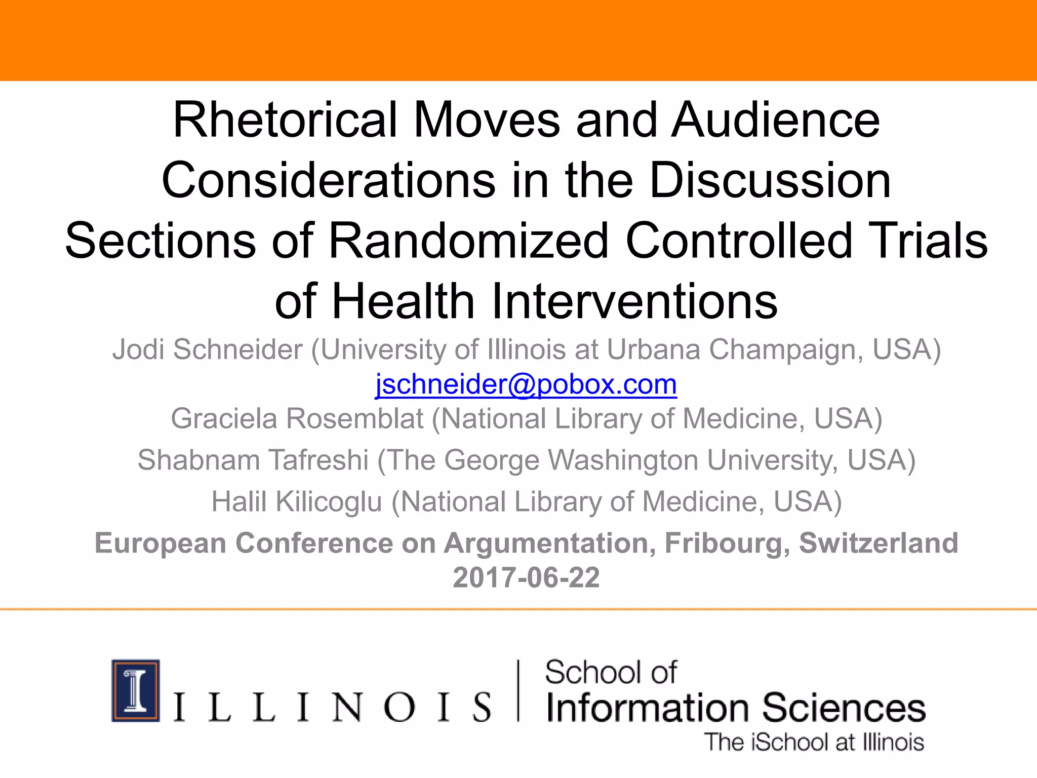 The document discusses rhetorical strategies used in the discussion sections of randomized controlled trials (RCTs) in health interventions. It emphasizes the importance of various rhetorical moves, such as novelty and validity of methods, while addressing multiple audiences including specialists and non-specialists. Ongoing studies aim to analyze citation structures and improve the understanding of how to effectively communicate scientific findings.