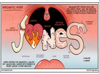 Rheumatic fever is an autoimmune disease that can occur as a result of a streptococcal throat infection. It affects multiple body systems but commonly involves the heart, joints, and brain. Symptoms may include heart inflammation (carditis), painful and migratory swollen joints (arthritis), jerky involuntary movements (chorea), and others. The disease is caused by an abnormal immune response that causes antibodies produced against streptococcal bacteria to also attack human tissues. Treatment involves bed rest, antibiotics to treat the initial infection, and anti-inflammatory drugs. Recurrences of the disease can be prevented with long-term antibiotic prophylaxis but cardiac damage may persist long-term in the form of rheumatic heart disease.