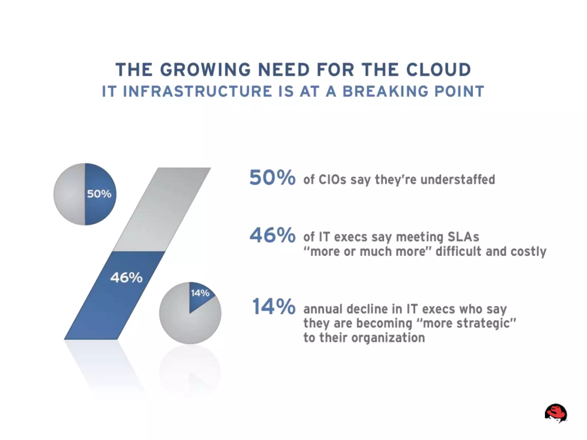 The document discusses building an open cloud using Red Hat technologies. It argues that enterprises should build an open cloud out of all their existing resources, including physical, virtual, and public cloud options, in order to leverage existing investments and keep options open for the future. This approach balances enterprise needs like operations, governance, and risk mitigation with cloud benefits like agility, efficiency and on-demand resources. Red Hat's cloud vision and technologies like Red Hat Enterprise Linux, Red Hat Enterprise Virtualization, CloudForms, and OpenShift can help enterprises build such an open cloud.