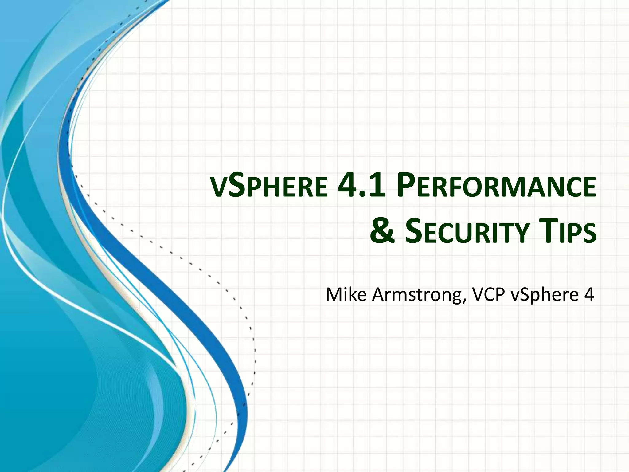 The document provides tips for improving performance and security in a vSphere 4.1 environment. It discusses new features in vSphere 4.1 related to networking, storage, memory compression, and management. It then outlines best practices for securing the virtual infrastructure, including using virtual networking segmentation, hardening ESXi hosts, protecting the vCenter management environment, and securing individual virtual machines. The document recommends configuration changes, tools, and resources to help optimize and safeguard the virtualization platform.
