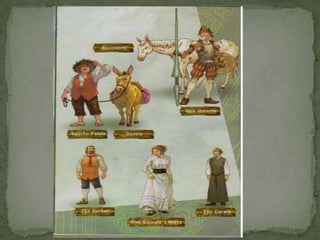 1) The document provides a detailed summary of events from Part II of Don Quixote, including Don Quixote and Sancho's adventures as they travel between various locations like El Toboso, Zaragoza, and the Cave of Montesinos.