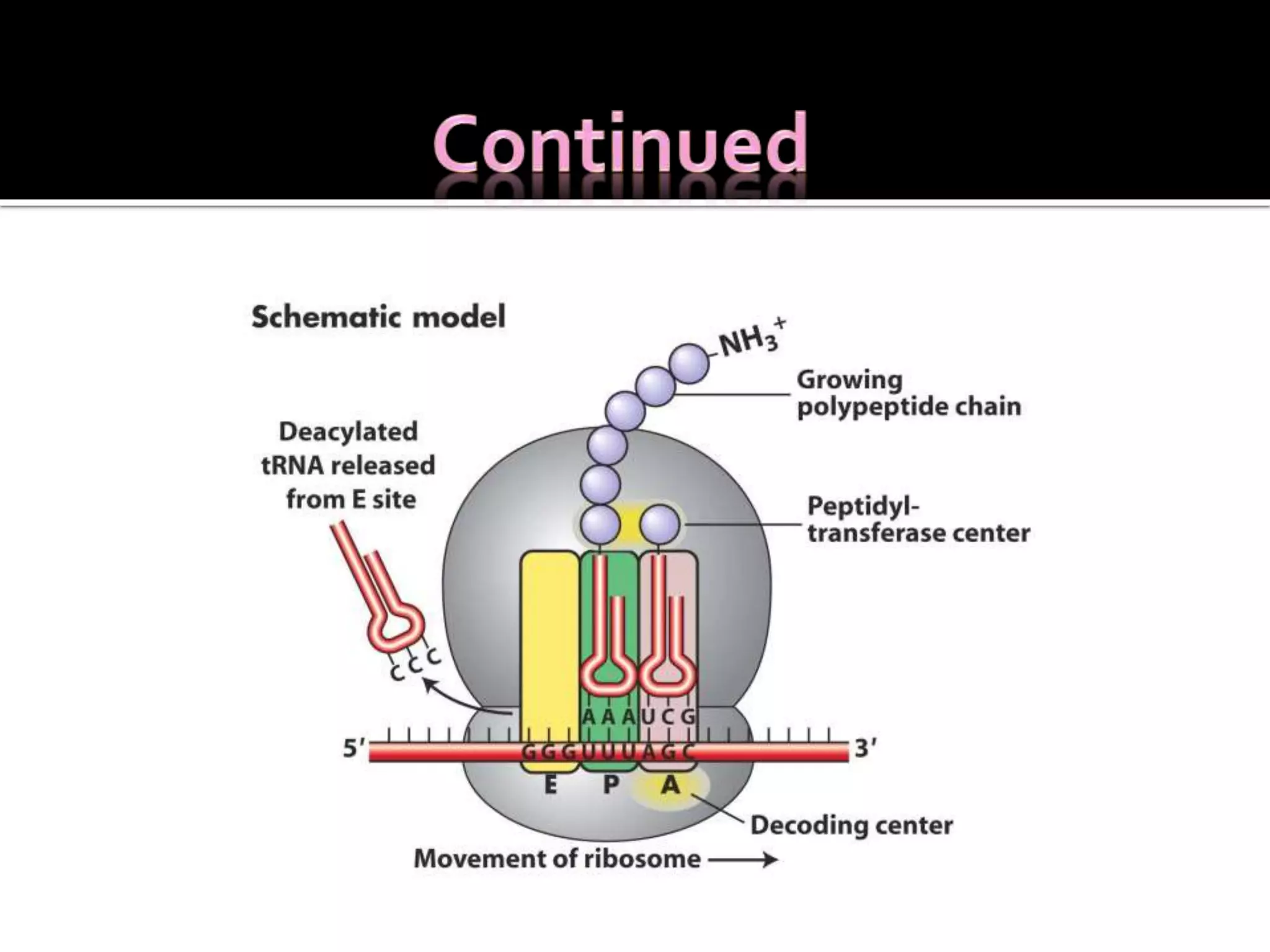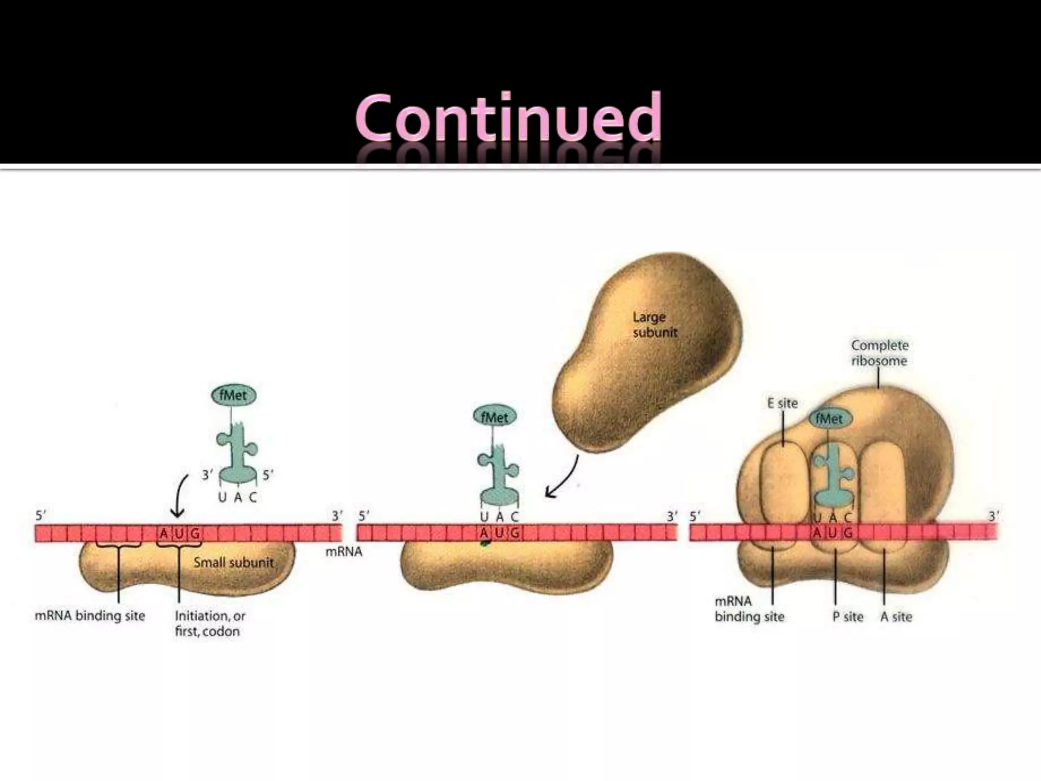 Ribosomes are organelles found in all cells that serve as the site of protein synthesis. They are composed of two subunits made of ribosomal RNA and proteins. In prokaryotes, the 70S ribosome contains a 50S and 30S subunit. Protein synthesis occurs through the three steps of initiation, elongation, and termination on the ribosomal subunits using messenger RNA as a template and transfer RNA to deliver amino acids. Antibiotics can inhibit bacterial protein synthesis by binding to the ribosomal subunits.