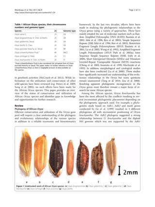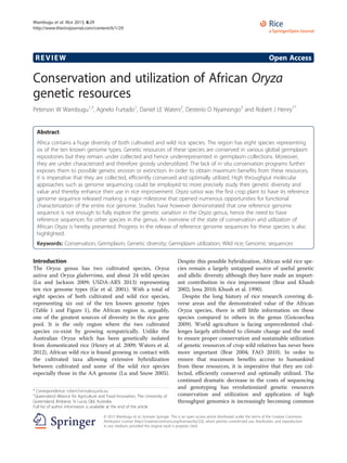 African Oryza species represent a significant source of genetic diversity for rice. However, they remain undercollected and undercharacterized. The region contains eight rice species representing six of the ten known rice genomes. While genetic resources of these species are conserved in various global gene banks, they remain underrepresented in collections and underutilized. Increased collection, characterization using high throughput sequencing, and conservation of African Oryza species is needed to maximize benefits from this genetic diversity and enhance rice improvement.