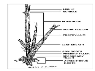 This document provides information on rice cultivation techniques and varieties in Pakistan. It discusses the botanical classification of rice, the structure of rice plants and seeds, growth stages of rice from germination to ripening, and factors that influence rice yield such as soil selection, variety selection, fertilizer use, and pest management. It also outlines different rice varieties grown in Pakistan's provinces and the soil and climate conditions suitable for rice cultivation. Methods of sowing rice nurseries and transplanting rice are described. Pests that affect rice such as stem borers and plant hoppers are also mentioned.