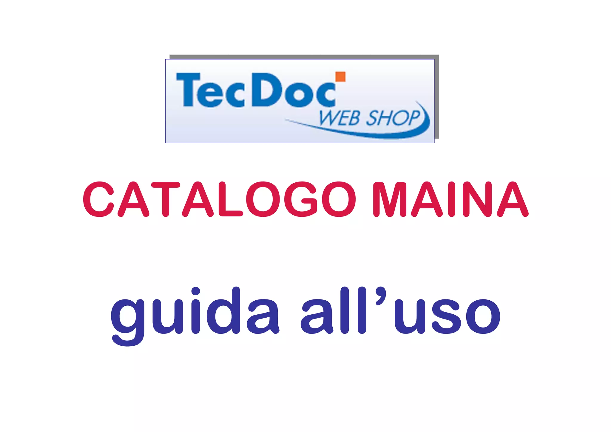 Il documento descrive l'utilizzo del catalogo TecDoc Web Shop per i rivenditori abilitati di Maina, consentendo la ricerca di articoli tramite vari criteri come codice originale o tipo di veicolo. Gli utenti possono consultare informazioni dettagliate sui prodotti, aggiungerli al carrello e verificare disponibilità e prezzi. Per segnalare problemi o malfunzionamenti, è fornito un indirizzo email di contatto.