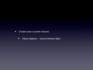 This document discusses Rich Internet Applications and Flex. It covers creating custom classes like Product and ShoppingCartItem classes. It also discusses databinding using the [Bindable] metadata tag, how Flex writes code on behalf of the developer, and how binding works through event dispatching and listening. It further explains how collections like ArrayCollection can dispatch events to support databinding, and covers sorting, filtering, and cursors on collections.