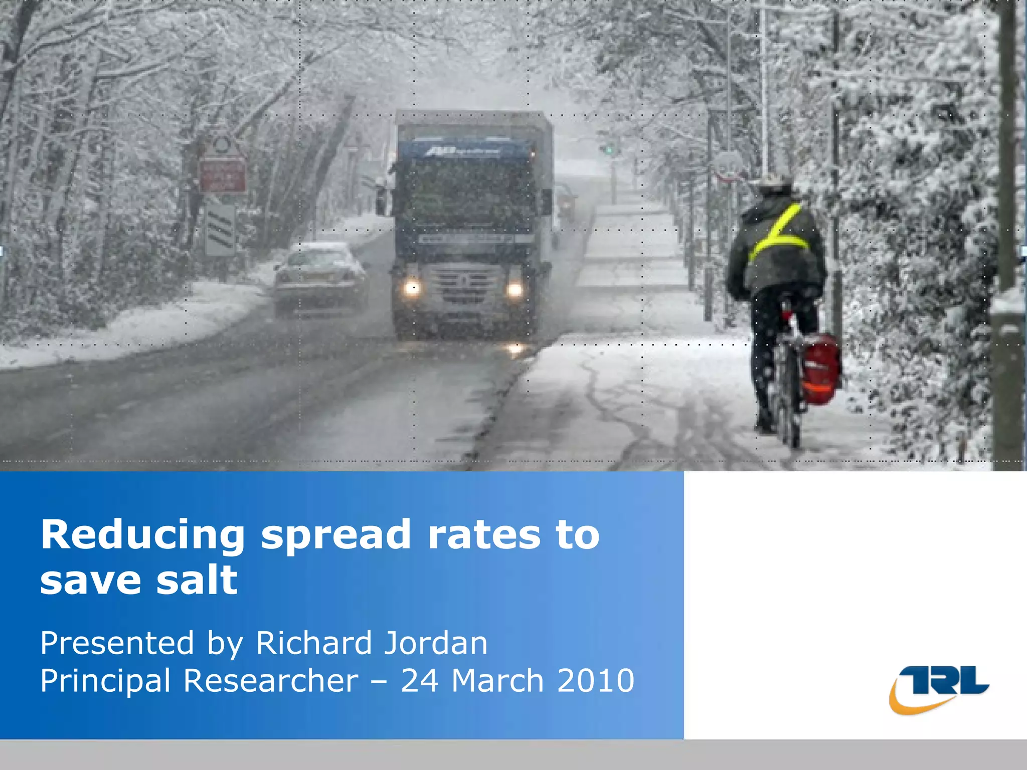 This document summarizes a presentation about reducing salt spread rates to save salt. It discusses factors that affect salt distribution and dissolution like moisture content. It presents data showing that targeting the minimum effective salt dosage and improving initial distribution can save 17-29% of salt. Tables propose new lower spread rates for different weather and road conditions. It concludes there is potential to reduce salt usage by optimizing spread rates and distribution based on conditions. National guidance on equipment calibration and controlling variables is recommended to safely reduce spread rates.