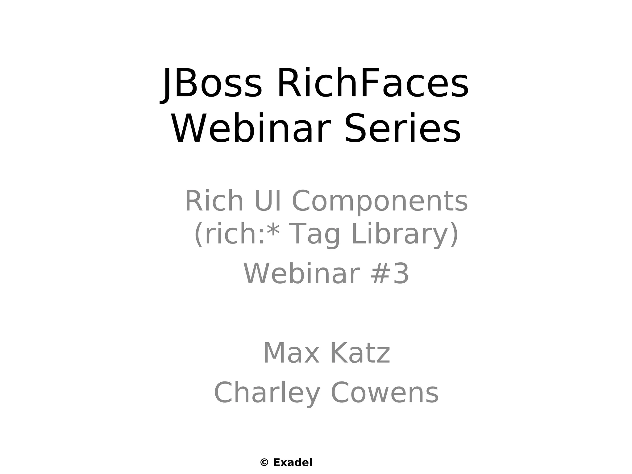 1) This webinar reviewed JBoss RichFaces, a library of AJAX-enabled UI components for JavaServer Faces applications.