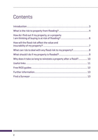 This document serves as a comprehensive guide on flooding risks to properties, explaining various causes of flooding such as surface water, groundwater, river, coastal flooding, and escape of water events. It provides essential information on assessing flood risk, its impact on property value and insurability, and recommendations for flood resistance and resilience measures. Additionally, it outlines proper actions to take during and after a flood, as well as resources for further assistance.