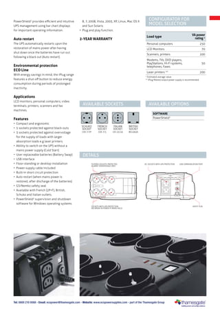 The iPlug series is a compact and versatile UPS ideal for protecting household and small office systems from power surges and blackouts. Key features include a pseudo-sine wave inverter, user-replaceable batteries, and Powershield3 software for safe shutdown during power failure. Its contemporary design supports multiple socket options and auto-restart functionality after power restoration.