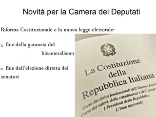 Il documento tratta della modifica della funzione legislativa in Italia, dove la Camera dei Deputati assume una preminenza significativa rispetto al Senato in molte materie, esaurendo gran parte dell’iter legislativo. Sono introdotte nuove regole per la partecipazione dei parlamentari e viene stabilita l'obbligatorietà di partecipazione, con sanzioni per le assenze. Infine, il documento evidenzia i cambiamenti nelle procedure referendarie e legislative, inclusa l'iniziativa legislativa da parte di diversi soggetti.