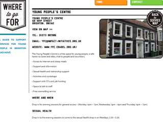 The document discusses the Right Here initiative, a 5-year pilot program funded by MHF and PHF to improve mental health services for youth ages 16-25 in Brighton and Hove, UK. It is being run by Sussex Central YMCA and Mind in Brighton and Hove through resilience activities, campaigns, peer research, and fast-track counseling. It also details work being done with GPs, including youth research on experiences with GP services, assessment visits to GPs to provide best practices, and developing digital tools like "Doc Ready" and "My Places" to help prepare youth for doctor visits and find local mental health resources.