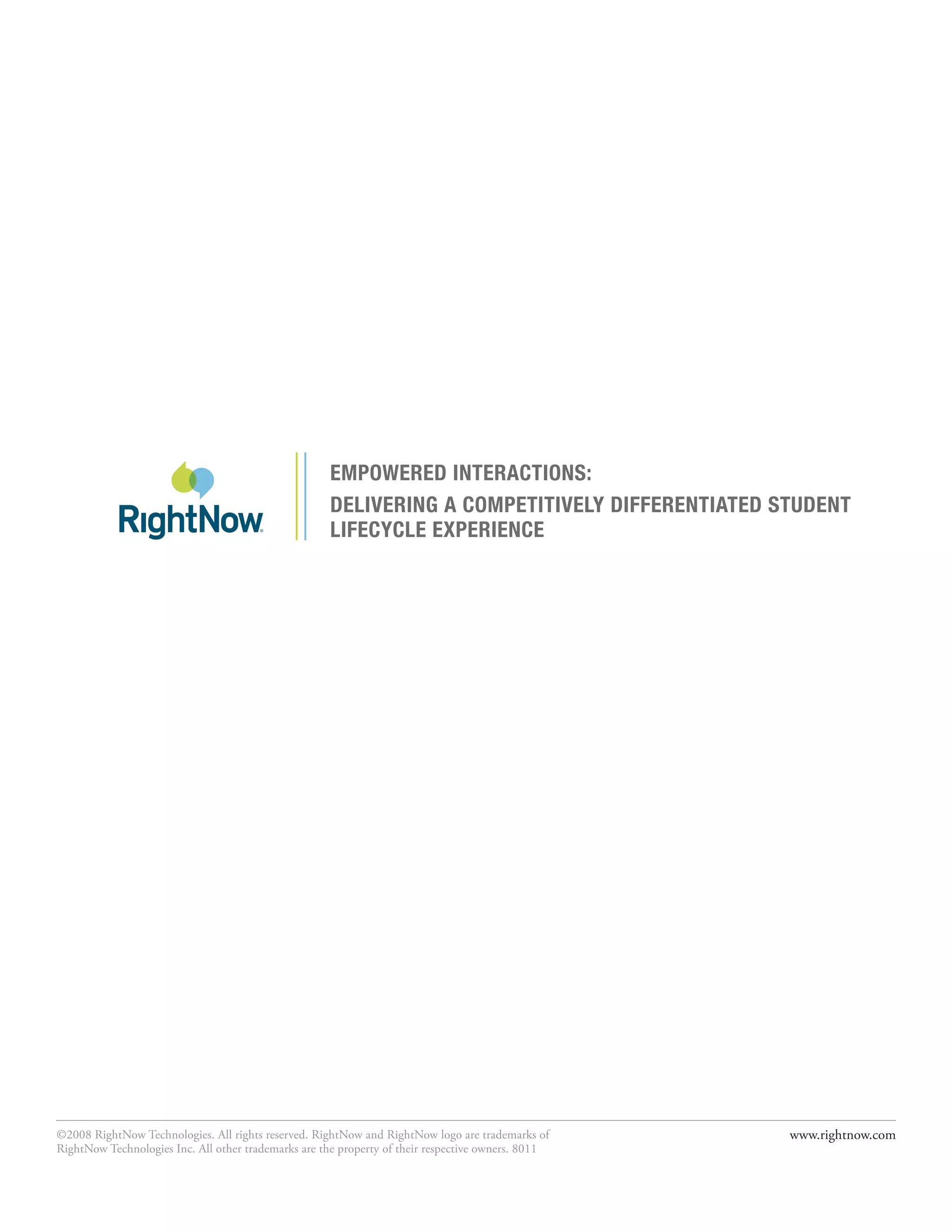 1) The document discusses eight core capabilities that higher education institutions can acquire to ensure high-quality interactions with constituents across the student lifecycle.
