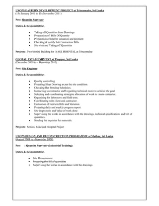 This document contains the resume of K. Mohammed Rihan, a Quantity Surveyor from Doha, Qatar. It summarizes his educational qualifications including a BTech in Quantity Surveying from 2006-2009 and a Diploma in Civil Engineering from 2005-2007. It also outlines his relevant work experience over the past decade, including his current role as a Quantity Surveyor at Integrated Engineers & Contractors in Doha since 2012 and previous roles in Sri Lanka.