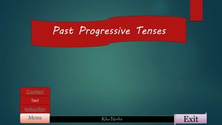 The document is a test on past progressive tenses taken by Rika Nurlia. It contains 6 multiple choice questions testing the use of was/were + verb-ing to indicate actions that were ongoing in the past. The test provides the answer key indicating the correct answer for each question is A. It also lists Rika Nurlia's name, student ID number, and email at the top.