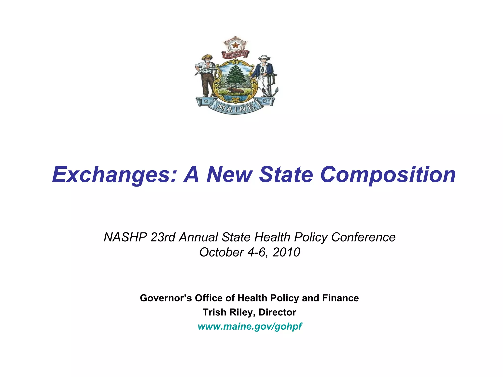 The document discusses key goals and functions of health insurance exchanges established under the Affordable Care Act. It outlines how exchanges are meant to distribute insurance, coordinate eligibility, set standards, and improve affordability and quality of care. Specific functions of exchanges include determining eligibility, creating standard benefit categories, enrolling individuals and businesses, certifying qualified health plans, and establishing consumer-focused websites and assistance programs. The document also raises issues around the role of exchanges in coordinating with Medicaid, regulating brokers and navigators, and incentivizing participation from small businesses.