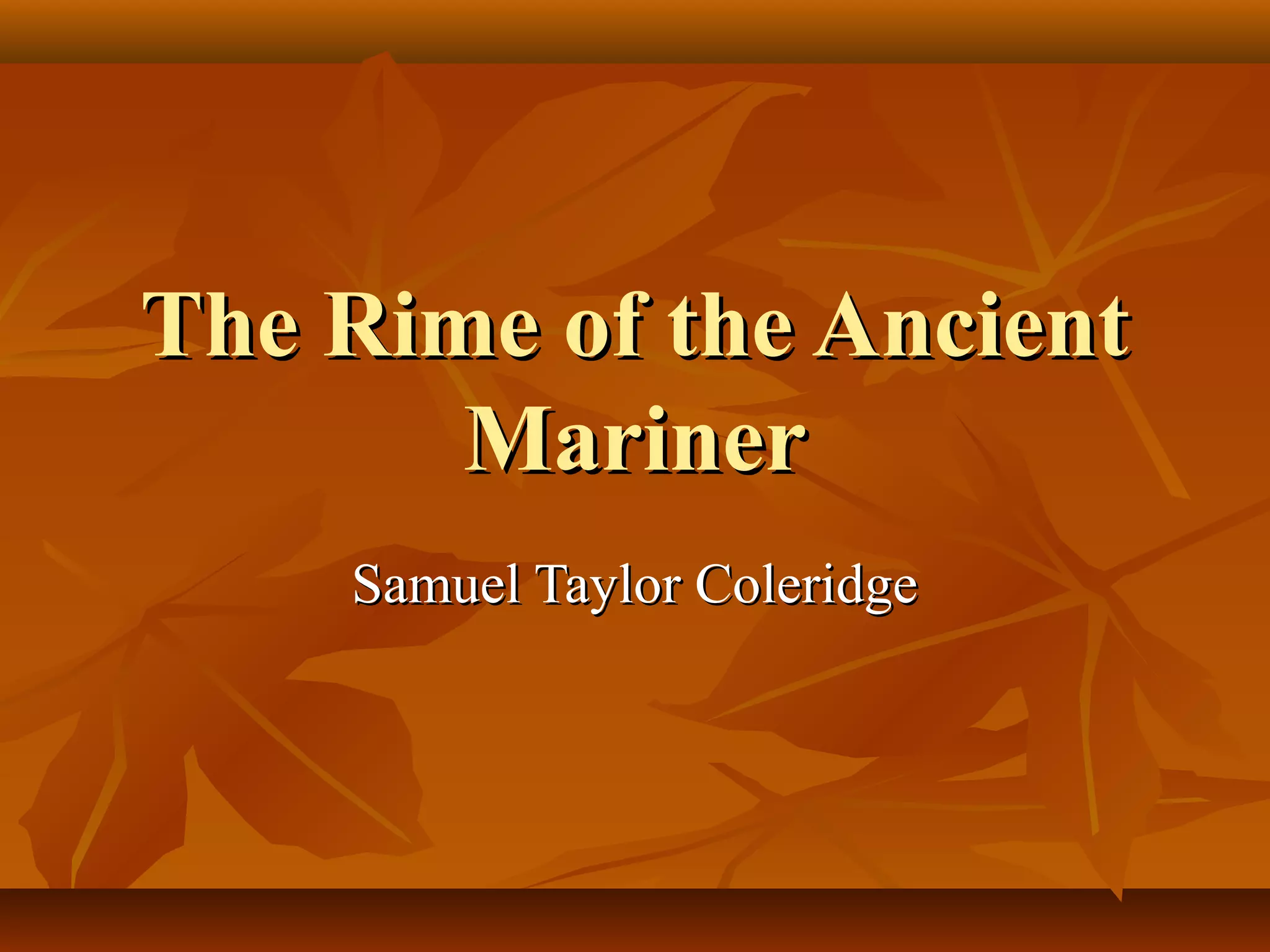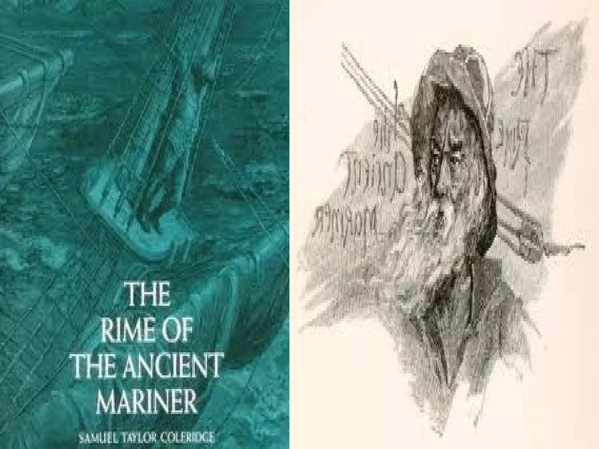 This document provides an overview of Samuel Taylor Coleridge's famous poem "The Rime of the Ancient Mariner". It includes biographical information about Coleridge, background on the poem and its themes, and excerpts from the poem describing the Mariner shooting an albatross which dooms his shipmates while at sea.