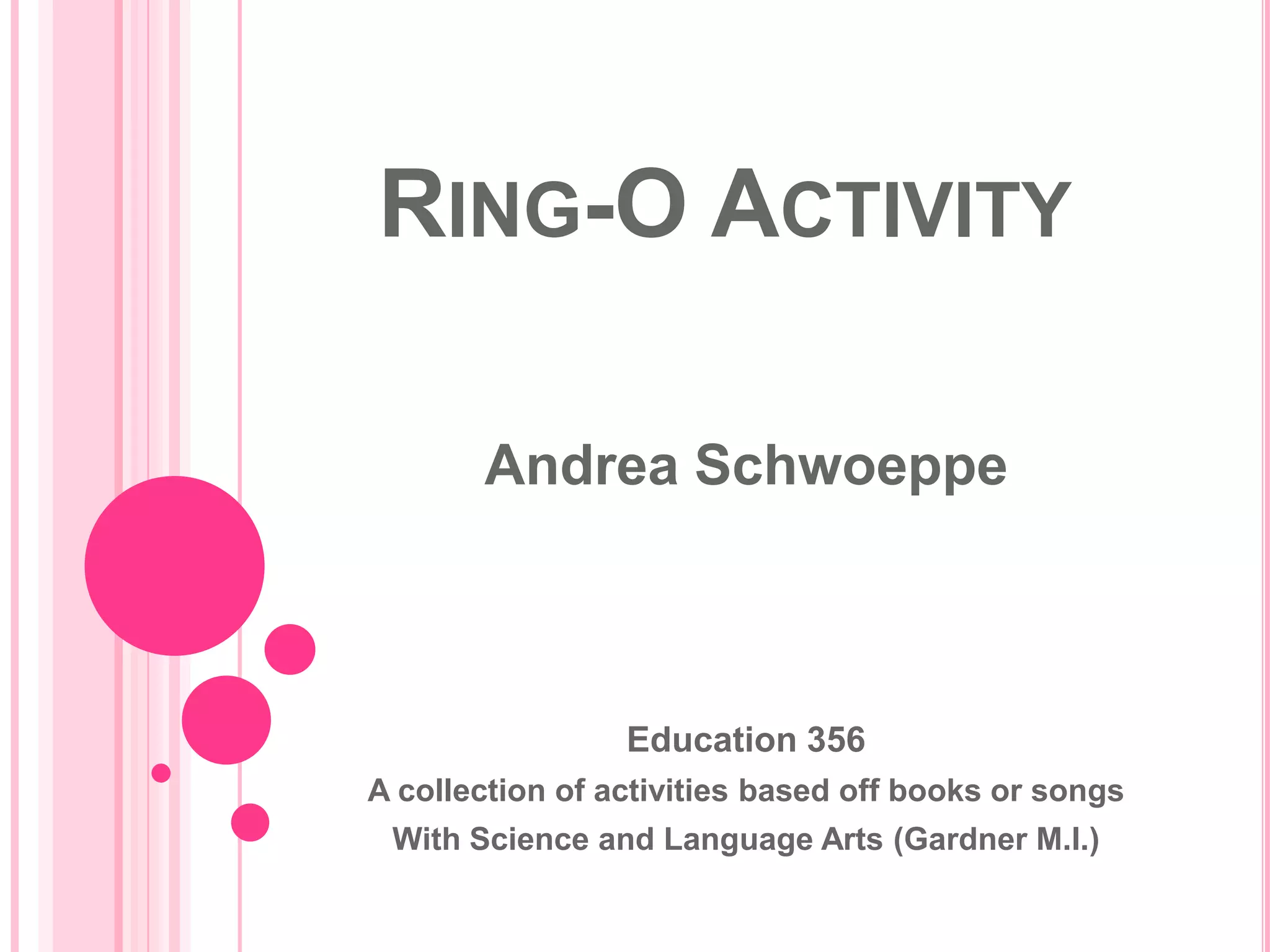 This document provides activities for ring-O based on books and songs. The first activity is for the book "When Moon Fell Down" and involves reading the story, discussing if it is fantasy or reality, asking questions about the moon, and having students observe the moon. The second activity is for the book "Shape Capers" and has students identify shapes, cut out shapes to make an animal picture, and write about their animal. The third activity is for the book "Countdown to Kindergarten" and involves reading, counting, identifying rhyming words, and sorting objects by size and shape.