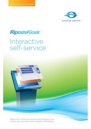 RiposteKiosk is a self-service kiosk solution that establishes a powerful new self-service channel for businesses. It provides an intuitive interface and integrates seamlessly with various peripherals. RiposteKiosk offers reliability, security, and flexibility through its customizable applications and integration capabilities.