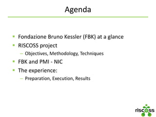The RISCOSS project, initiated in November 2012 with a budget of €3.2 million, aims to improve risk management in the adoption of open-source software (OSS) by developing methodologies and tools to identify, manage, and mitigate risks associated with OSS integration. The project has engaged various academic and industry partners to enhance decision-making processes and support the effective use of OSS, with an emphasis on community involvement and feedback from volunteers on its implementation. Evaluation results indicate that the RISCOSS platform is perceived as useful for increasing productivity and decision-making efficiency, although challenges remain in terms of ease of use and the potential for full automation in risk assessment.