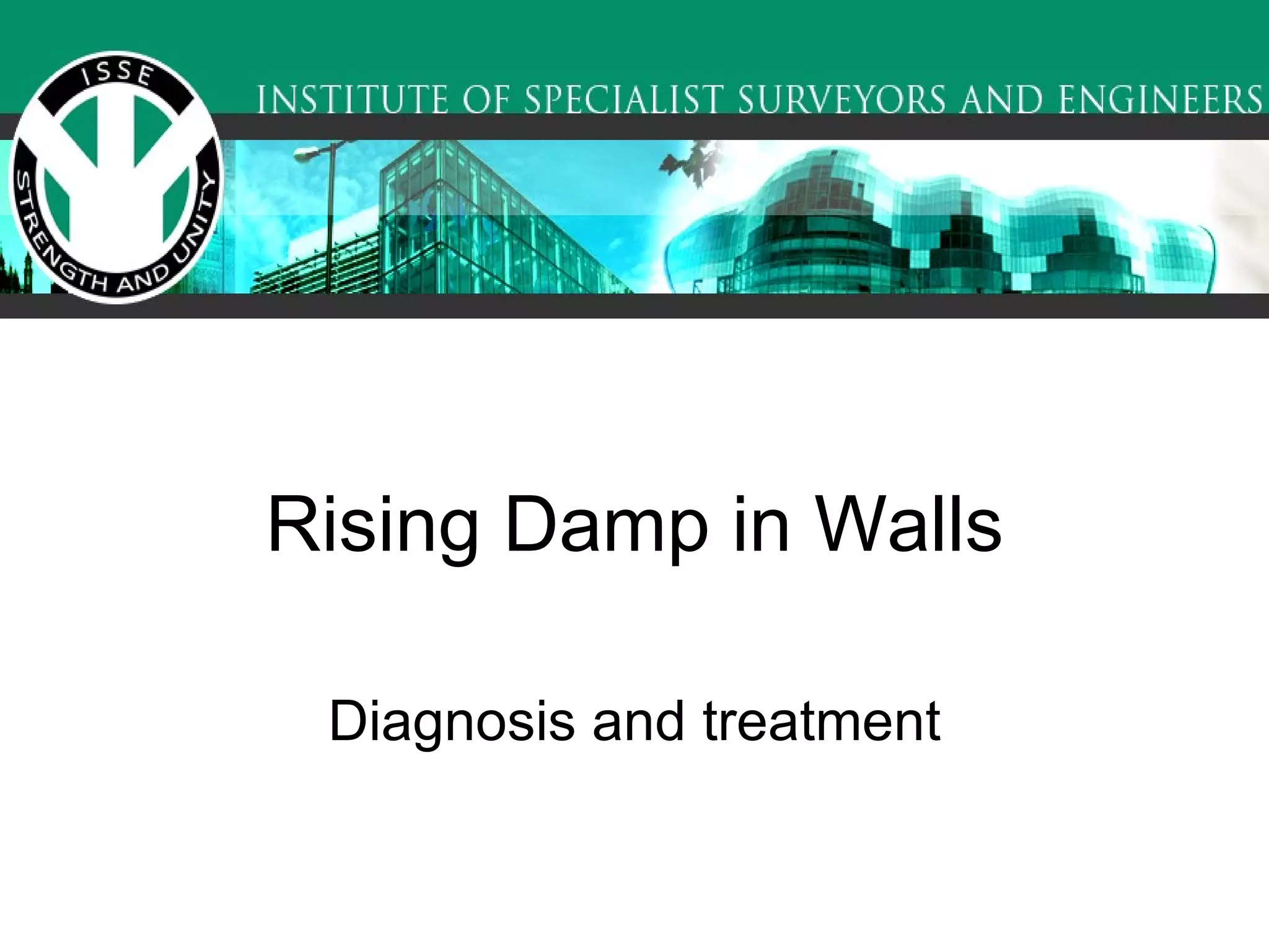 Rising damp occurs when masonry walls absorb water from the ground due to capillary action. It can rise over 1m depending on the wall material and ground conditions. Diagnosing the cause is important - it may be rising damp, rain penetration, condensation, or leaks. Treatment involves improving drainage, replacing damaged damp-proof courses, and allowing walls to dry before replastering. New methods using chemical injection or nanotechnology are being researched to more effectively treat rising damp.