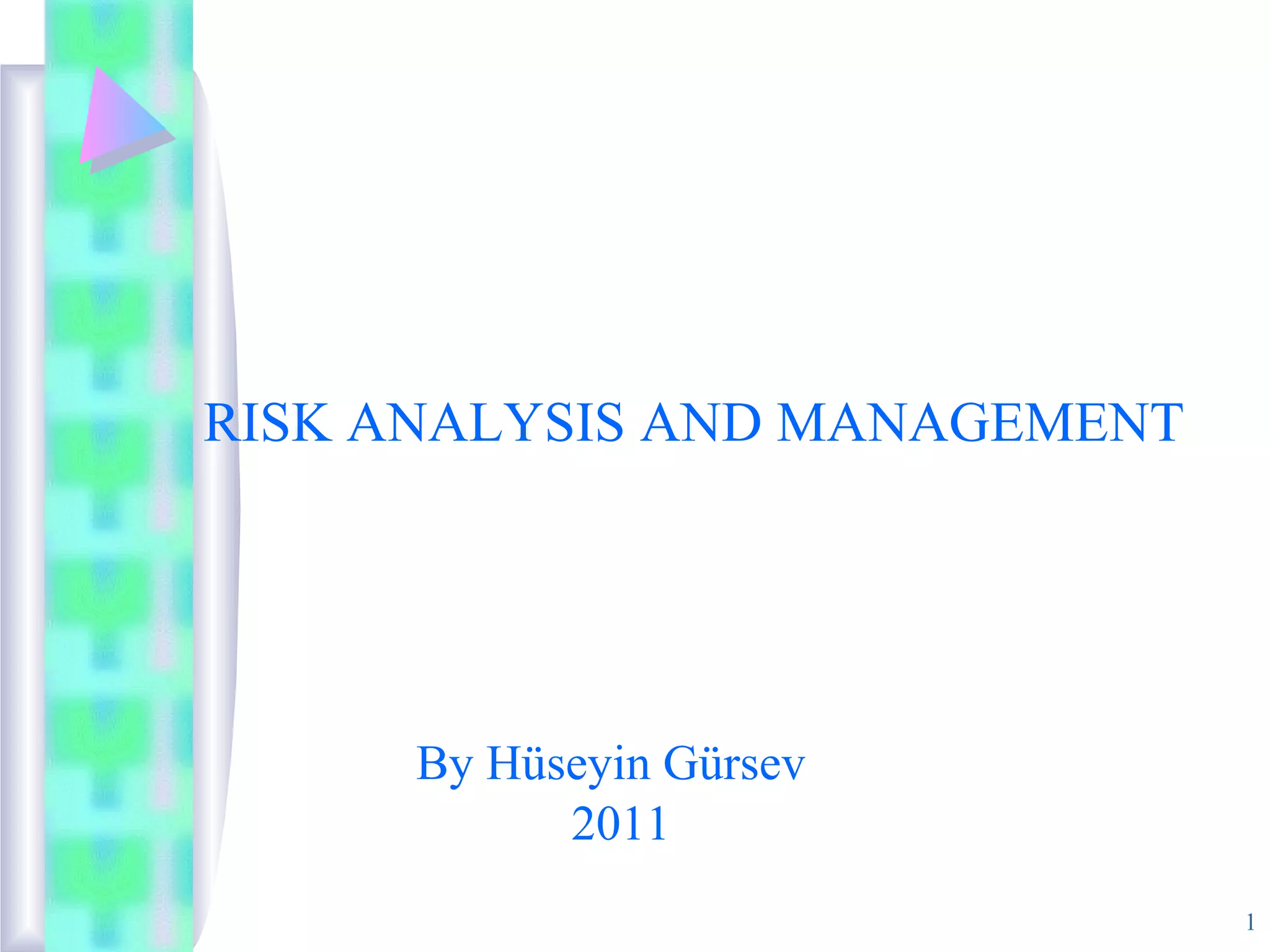 This document discusses risk analysis and management for projects. It defines risk as a potential problem that may or may not occur, and outlines why identifying and planning for risks is important for project success. The document then covers various aspects of risk analysis and management, including risk strategies, categories, identification, assessment, refinement, and developing plans to mitigate, monitor, and manage risks. The overall aim is to help project teams understand risks and put processes in place to avoid or minimize risks that could negatively impact a project.