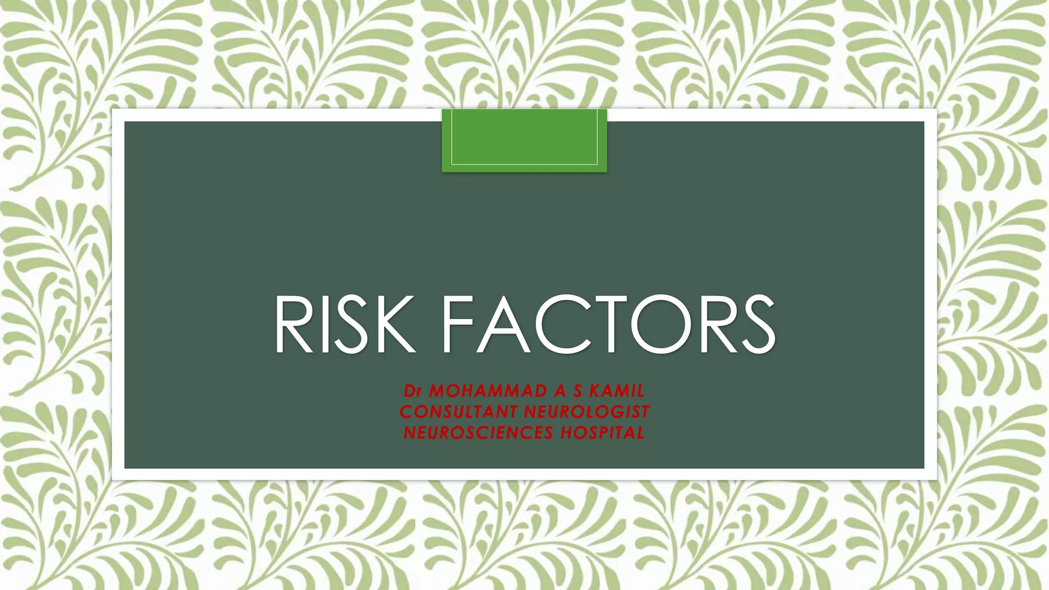 This document discusses risk factors for ischemic stroke. It identifies non-modifiable risk factors such as age, sex, race and heredity. The major modifiable risk factors are hypertension, atrial fibrillation, diabetes, hyperlipidemia, cigarette smoking, and physical inactivity. Approximately 90% of strokes can be explained by 10 risk factors, including these medical conditions and behavioral risks. The document provides details on how each of these factors increases the risk of ischemic stroke. It also discusses additional potential risk factors that are still under investigation.