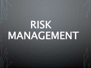 Risk management is the process of identifying and mitigating risks that may affect a project. It includes planning risk management, identifying risks, analyzing risks qualitatively and quantitatively, planning risk responses, maintaining a risk register, and monitoring and controlling risks. The key benefits of risk management are reducing the negative impacts of risks, increasing the probability of positive outcomes, and effectively allocating resources to address risks.